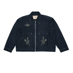 Denim Work Jacket boxy dengan bahan denim yang dilengkapi 2 saku dibagian depan dengan desain bordir dibagian depan dan belakang. Denim Work Jaket ini mengutamakan kenyaman dan ketahanan durabilitas dan juga memberikan kesan jaket vintage.